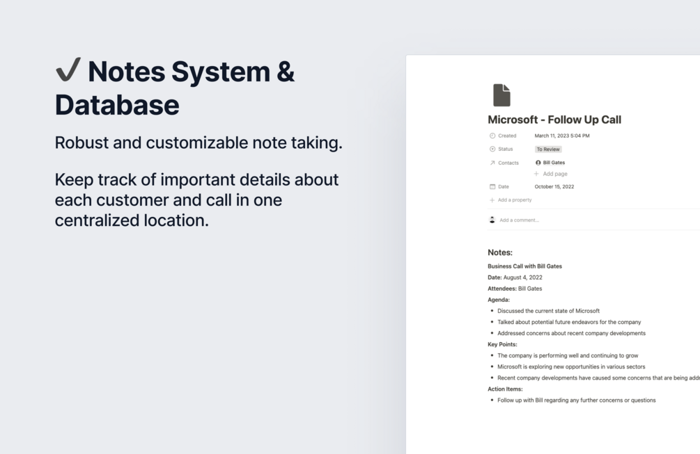 A complete CRM system to monitor your sales pipeline, manage contacts, create & assign notes and manage meetings.