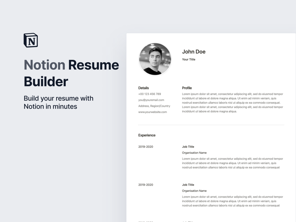 No more messing around with Word files. Build your resume with Notion in minutes, and export a 'ready-to-submit' PDF file.