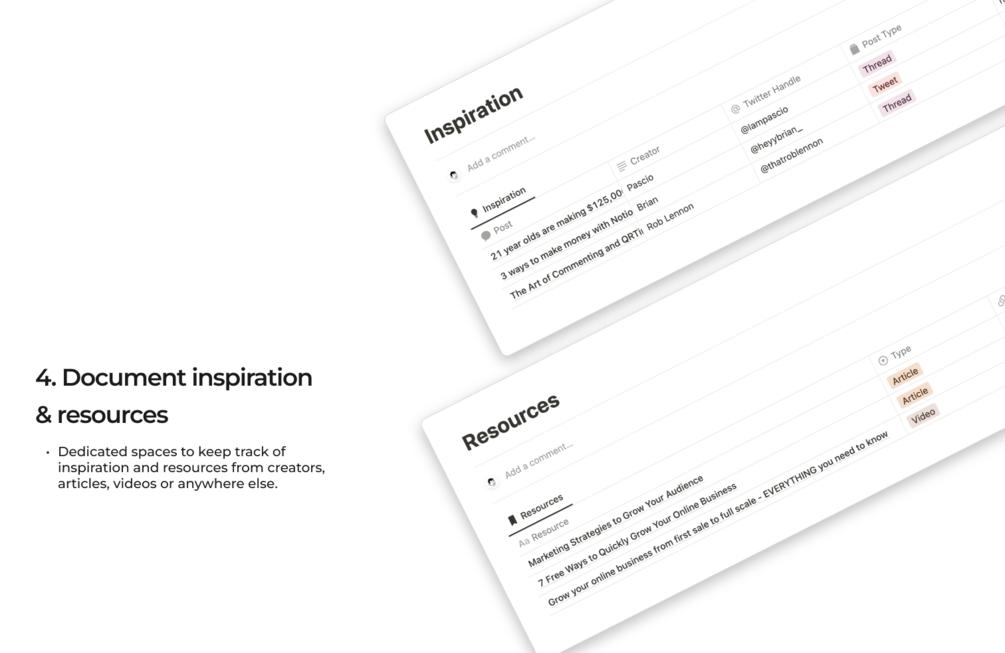 Say goodbye to creative blocks and hello to a more organized and effective social media strategy with this Twitter Content Hub Notion template.